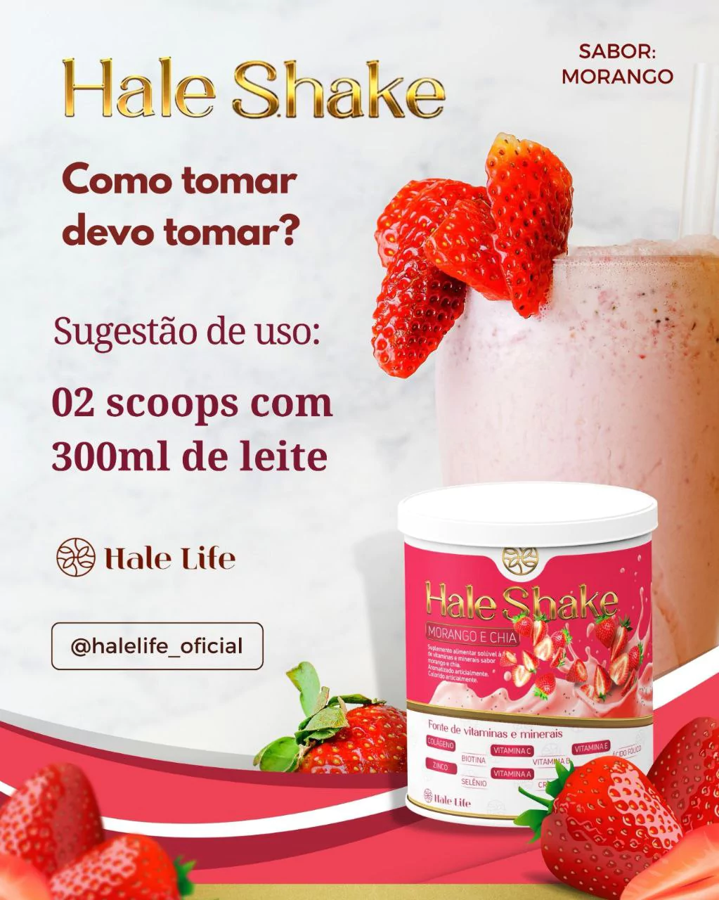 Como consumir: adicione 2 scoops (15 gramas cada) de Hale Shake em 300 a 200ml de leite. Bata no liquidificador ou na coqueteleira. Você pode acrescentar gelo ou frutas, se preferir. Consuma logo após o preparo. Ingerir 1 vez ao dia ou de acordo com a recomendação de médico e/ou nutricionista.