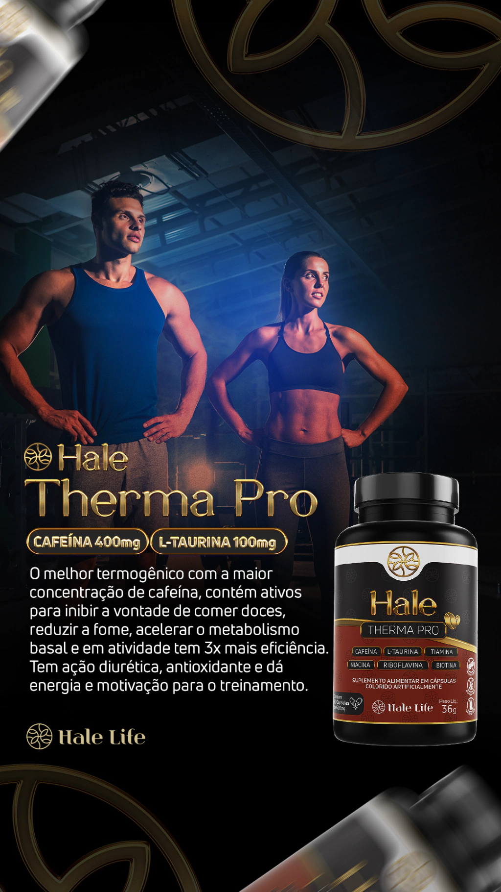 Nossa fórmula tem a combinação explosiva de ingredientes para o máximo de energia e queima de gordura. Hale Therma Pro é o termogênico perfeito para quem precisa de energia rápida, eficiente, performance e rendimento nos treinos.